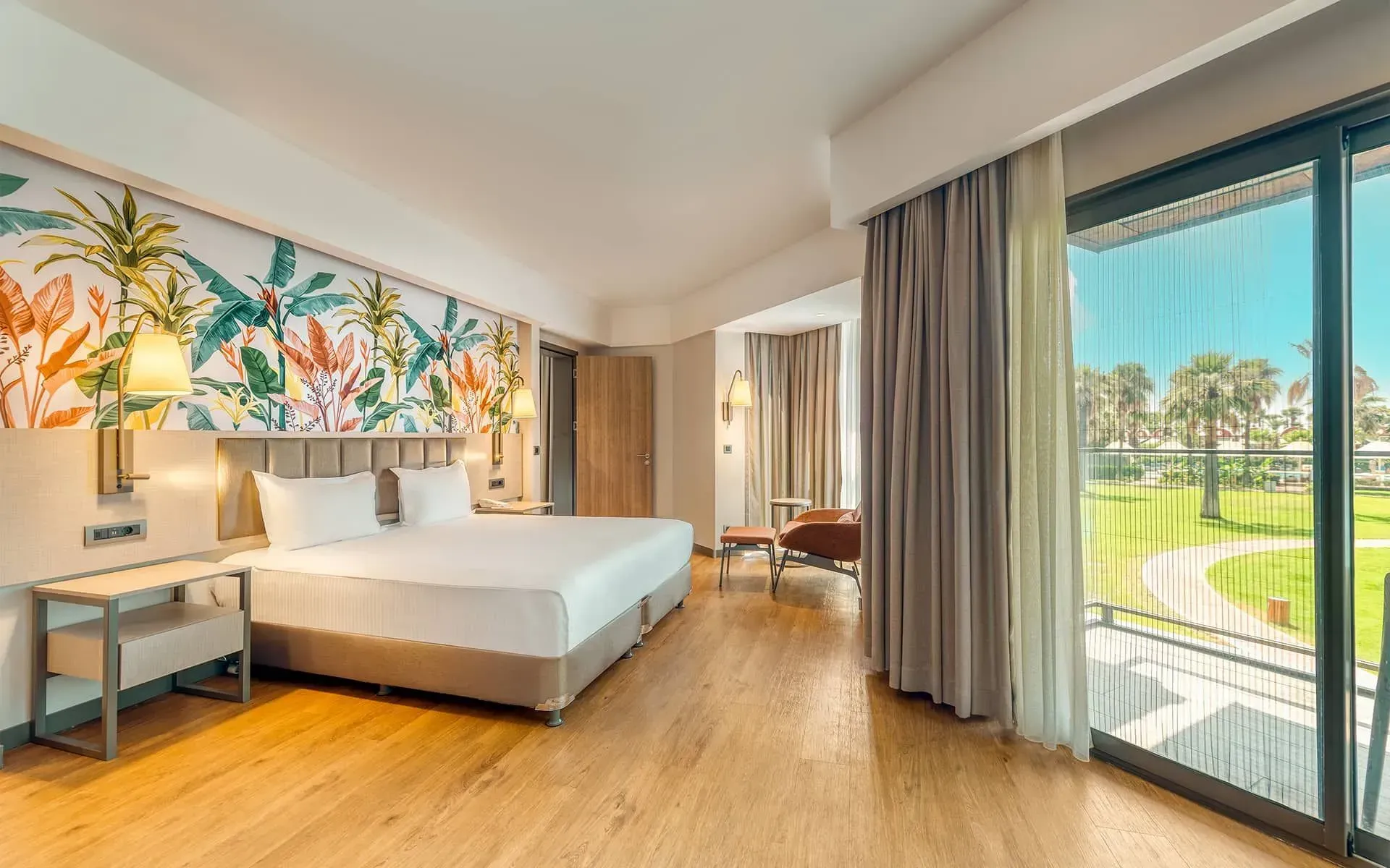 В номерах нашего роскошного отеля в Белеке на полу имеется создающее теплую и уютную атмосферу ковровое покрытие, при этом в каждом номере имеется LCD-телевизор, мини-бар, сейф и центральный кондиционер. Благодаря современной ванной комнате и балкону с прекрасным видом на бассейн или сад, создающим атмосферу умиротворения, гостям предоставляется возможность приятного пребывания. Идеальный вариант для желающих провести отдых в престижном и комфортабельном отеле!